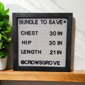 Size: Medium (8/10), chest 30 inches, hip 30 inches, length 21 inches
