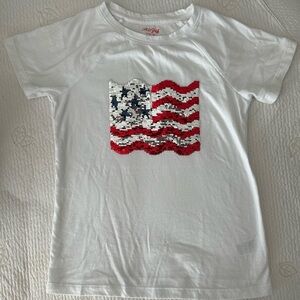 Cat & Jack: Girls Short Sleeve Shirt - Size Large. Washed and worn several times with moderate pilling & fading throughout. Sequin can be moved up and down to change design colour shades (photos 3 & 4) Some sequins may be missing or damaged. Some sequins may not move easily and/or are loose which may cause slight colour variations on the design. Closely review photos for visual of the condition of the item. 60% cotton 40% polyester.