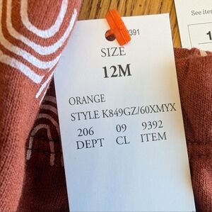 Adorable rust orange red outfit with rainbow print. Includes short-sleeve top and matching pants. Perfect for any occasion.