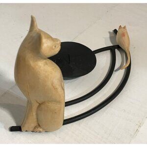Cat & Mouse Candle Holder Wood and Metal Modern Unique 6" tall