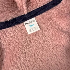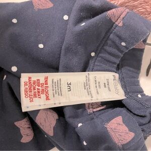 Outfit 1: PL Baby pink hoodie, tshirt onesie, and navy pants with pink cats