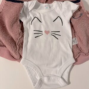 Outfit 2: Carter’s long sleeve onesie and black pants with bow pattern