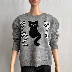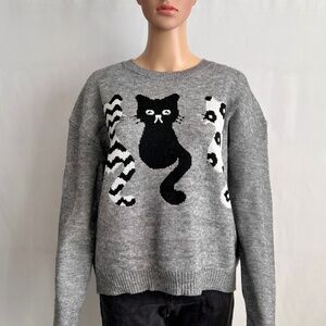 Cat Pattern Drop Shoulder Sweater