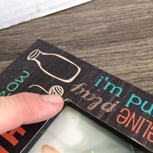Cute cat picture frame. Wording all around the outside. Holds a 4x6. This would make a cute gift to the cat lover in your life, just remember to add a picture of your favourite feline first!