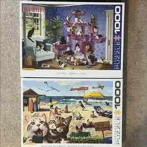 Set of three 1000-piece puzzles featuring cats.