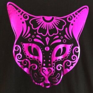 Cat T shirt, Cat Graphic Tee Shirt, Metallic, Purple, Size, M, New Without Tags