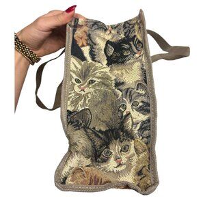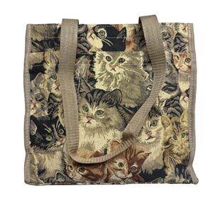 Beautiful SIGNARE tapestry shopping bag for women, featuring dozens of cats and kittens in a unique, colorful design. Excellent pre-owned condition, gently used with no noticeable wear. Perfect for cat lovers or as a stylish gift!