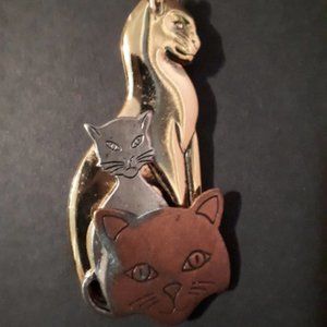 Cat Trio Brooch Pin Vintage Mixed Metals