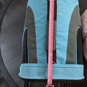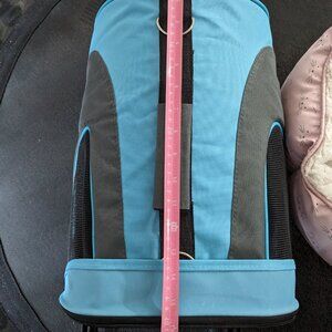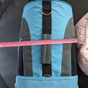 New light pink fluffy cat bed with grey cat face print. Cat carrier used once for my kitten. Great condition. Soft all over construction. Blue and black. Selling both together.