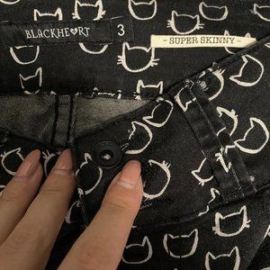 Cat jeans from hot topic. Very cute. Size 3 it says , I am a 26 it fits. Worn two times. Color slightly washed off after wash as you can see in the picture. Other then that it is in excellent condition.