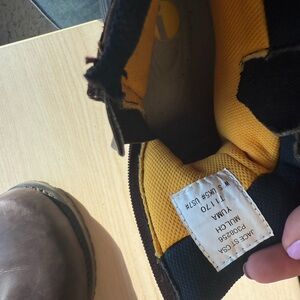Caterpillar “Jace St” size 7 women’s certified steel toed work boots worn very briefly not even a whole day-wrong size ankle boots with brown leather and gray fabric. Durable and versatile design.