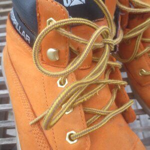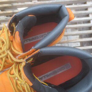 Caterpillar Men's Poe Chukka Leather Boots - Size 10. In very good condition with no damages. There are signs of wear and light dirt but can be cleaned easily with a nubuck brush or nubuck stone. The fit is true to size. Full compplement of treads. Beautiful orange color.