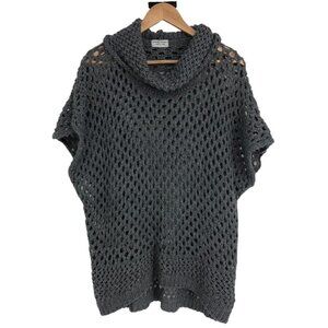 Catherine Lillywhite's Grey Chunky Knit Eyelet Cowl Neck Short Sleeve Sweater ~M