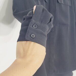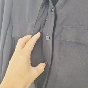 Catherine Malandrino Black Pocket Relaxed Fit Blouse Button Down Business Causal Adjustable Sleeves Size Small