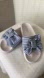 Pre-own! VGUC! 9/10 Normal wear! Chic slides with light blue and white stripes. Accented by an elegant seersucker bow.