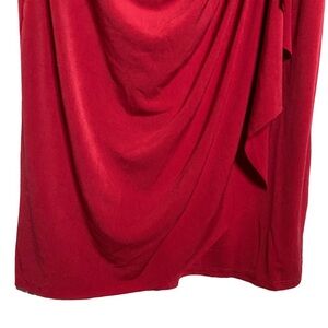 Catherine Malandrino Red Midi Dress Boat Neck Modest Draped Faux Wrap Large L
