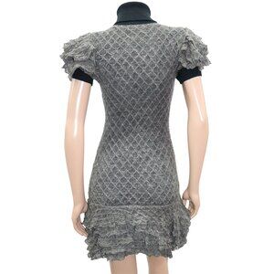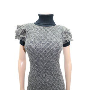Elevate your wardrobe with this chic Catherine Malandrino knit dress — where sophistication meets cozy comfort. Crafted in a beautifully detailed textured knit, this dress flatters the figure with its tailored silhouette and playful ruffled hemline. The puffed short sleeves and high ribbed neckline add a touch of vintage-inspired elegance, while the soft stretch knit ensures an effortless, comfortable fit.
