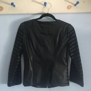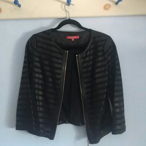 Gorgeous Catherine Malandrino jacket, alternating mesh and faux leather stripes. Great for the warmer weather! Bomber cut, centre zip.