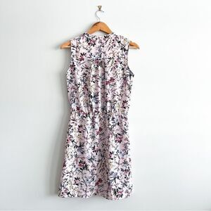 Catherine Malandrino Dress Floral Summer Pink Button Up Women's S Drawstring Tie Waist. Sleeveless. Elastic waist with pockets. No stretch. Very good used condition. Please see photos for approximate measurements.