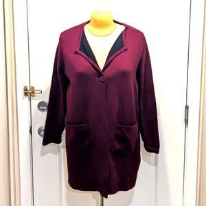Catherine Malandrino XXL Plum One Button Knee Length Cardigan Duster
