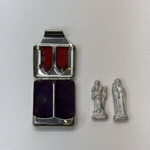 Catholic Pocket Shrine Double Window Case 2 Virgin Mary’s Figure Germany Vintage