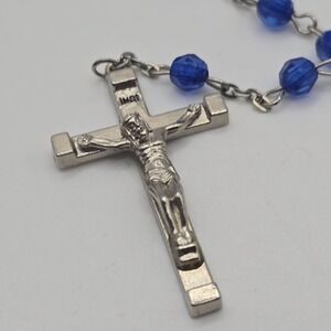Catholic Rosary Plastic Blue Facet Beads Silver Tone Cross