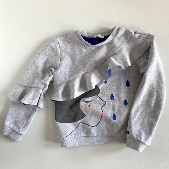 Grey sweatshirt with ruffle and raindrops print