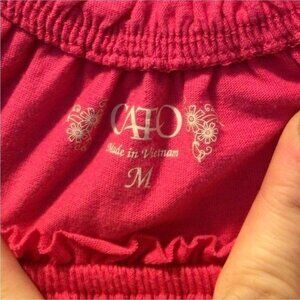 This bright pink sleeveless tank top by Cato features a gathered neckline with decorative floral embroidery in shades of pink and green. Made of a lightweight fabric, this top has a loose, flowy fit perfect for warm weather.