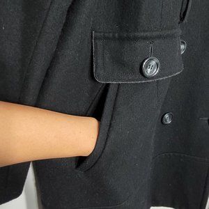 Cato Classic Womens Plus Size Double Breasted Peacoat Jacket Black Pockets Wool Blend Lined Belt Loops Business Career