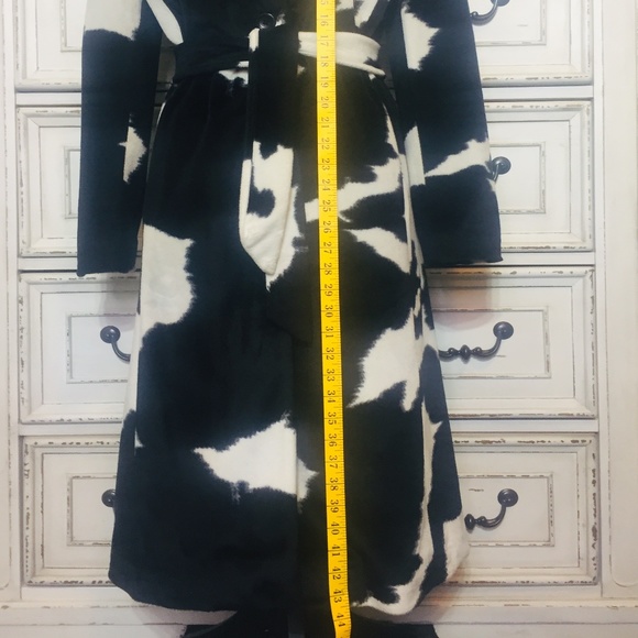 Non stop compliments on this coat, a joy to wear! The fabric is synthetic (pony like), but very soft to touch - almost like velvet. Fully lined with pockets, it was difficult to post a full length picture of the entire garment, but measurements are in the photos. All tags removed (except for the brand). Seldom worn and hangs in the closet... the world should see this beauty more often! Please do not hesitate if you have questions, delighted to accomodate. Smoke free, pet free (minus Boo-Boo who is not allowed in the closet) immaculate home environment with love