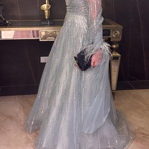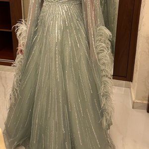 Catwalk Couture Mint Evening Gown with feathers (Weddings guest dress)
