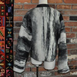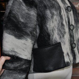 Caty Lesca Paris Black & White Marble Look Boiled Wool Blend Cropped Jacket Coat