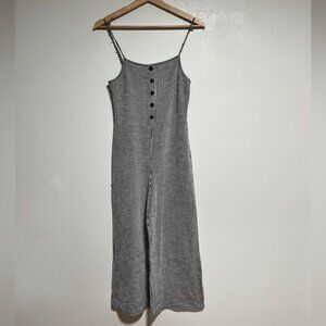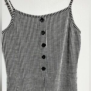 Caution to the Wind Black & White Striped Sleeveless Jumpsuit - Button Front - Size S (Stretchy)