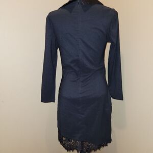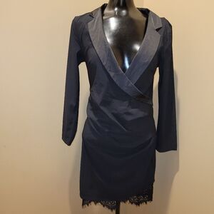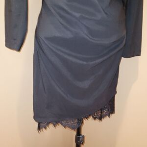cbr black silky feel delicate lace at the bottom low cut top short long sleeve perfect little black dress nwt size m pit to pit 18 stretchy