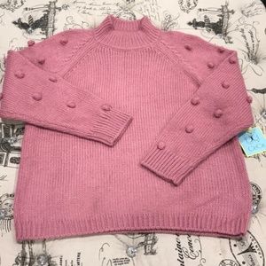 CeCe by Cynthia Steffe Pompom Sleeve Mock Neck