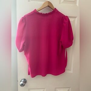 CeCe ruffle trim v-neck blouse puff short sleeve size large pink