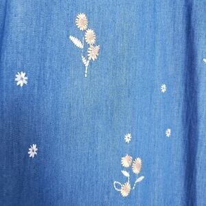 CeCe Chambray Sunflower Embroidery Spaghetti Straps Racerback Dress