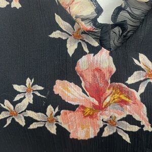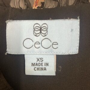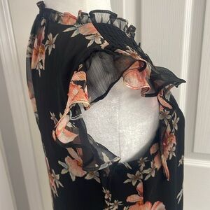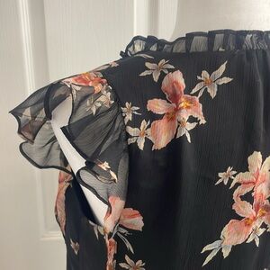 Cece Lava Flower on Black Flutter Sleeve Blouse Chiffon Lined Ruffles Size XS