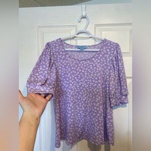 Cece Lilac Daisy Puff Sleeve Top Size Medium
