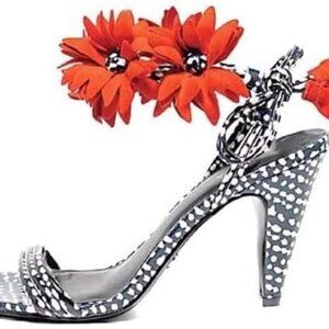 Cecelia New York Sonah White Black Red Flower Ankle Wrap HIgh Heeled Sandals