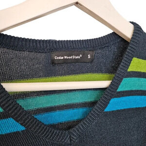 Cedar Wood State Mens V-Neck Striped Pullover Sweatshirt Size Small