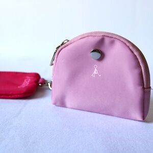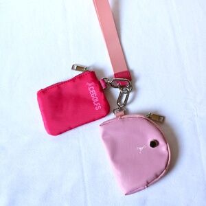 Dual pouch wristlet/wallet designed for keeping small items in place while you're on the move. Water repellent fabric in light and hot pink with 2 zippered pouches. Great for keeping just the essentials when out golfing or at the beach. Pre-owned but like new condition and never used. Smoke-free, pet friendly home!