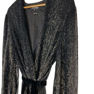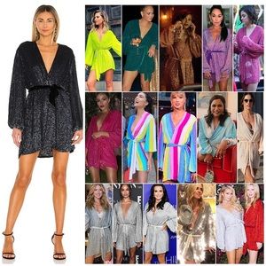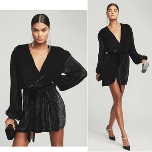 Celeb & BLOGGER FAVE RETROFETE Gabrielle Dress Robe Wrap Sequin Black NEW XS