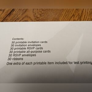This gorgeous invitation kit by Celebrate It is sure to have your family and friends awed by it elegance and finish. It comes with printable invitation cards, RSVP cards and all-purpose cards so that your guests do not miss out any details of your big day. Kit Contains 30 sets plus one extra for print testing.