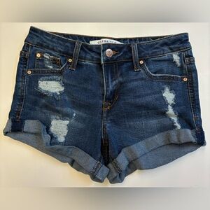 Celebrity Pink short stretchy distressed zip fly 5 pocket mini shorts size 25
