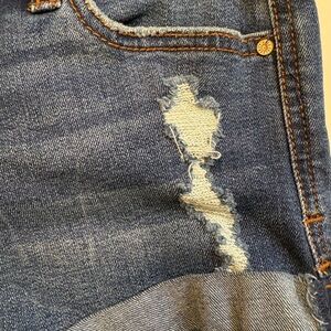Description: short stretchy distressed zip fly 5 pocket shorts.
