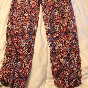 Celeste pants, size 10 girls, red, light blue, dark blue, white and peach, barely worn, 100% polyester