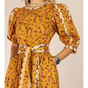 CeliaB Dress Sz L Celia B Yellow Alamo Corduroy Floral Midi Anthropologie New