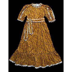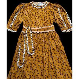 Celia B Dress Sz L Yellow Corduroy Floral Midi Boho South Western Prairiecore