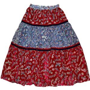 Celia B Sz L Skirt Blue Red Velvet Floral Midi Boho Chic Hippie Prairie Retro